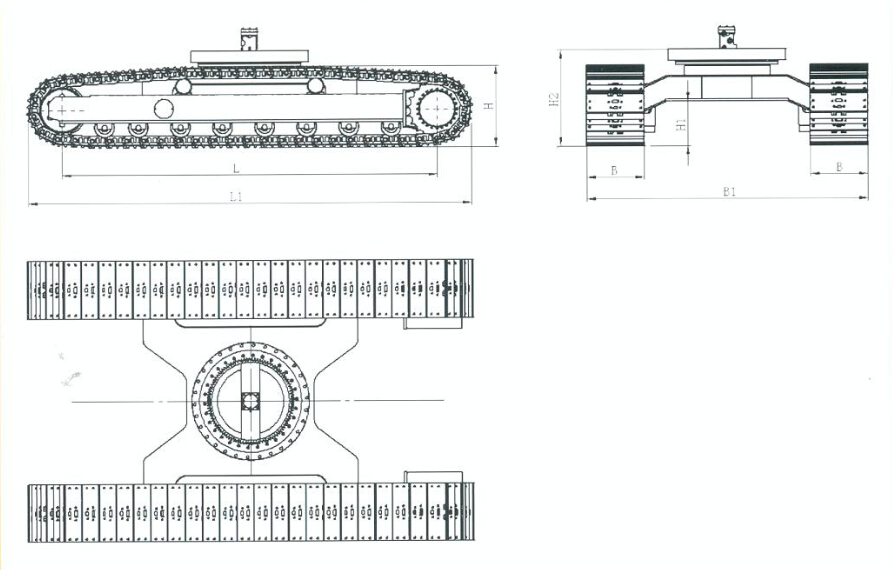 此款產(chǎn)品適用于大型挖機和打樁機, X形棟梁增大底盤的強度,增大承載力度,采用低速大扭矩內(nèi)藏式行走減速機驅(qū)動,外觀精致細(xì)巧??筛鶕?jù)客戶要求訂做。