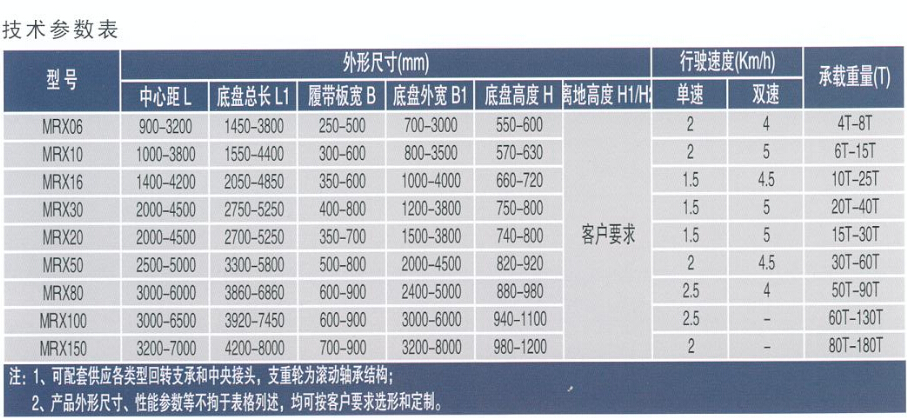 15噸帶回轉(zhuǎn)支撐的履帶的底盤性能參數(shù):承載總重:15噸,工作壓力:16MPA,行駛速度1-2公里每小時,接地比壓:0.089,爬坡度數(shù):20度。制動形式:機械制動加液壓鎖制動?;剞D(zhuǎn)接頭:定配。