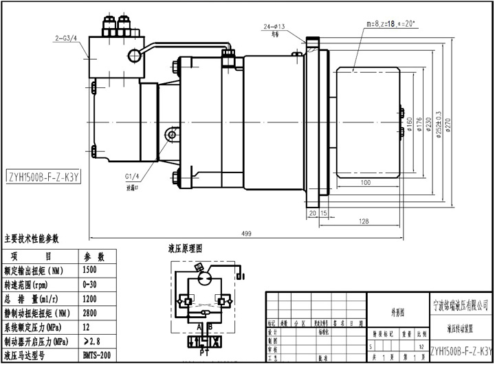 ZYH液壓回轉(zhuǎn)裝置改變了原有減速器龐大的體積和分體設(shè)計的思路,把液壓馬達、制動器、減速器、液壓控制系統(tǒng)、和輸出齒輪設(shè)計為整整體,從而具有轉(zhuǎn)速低、扭矩大、體積小、重量輕、安裝方便等特點。
